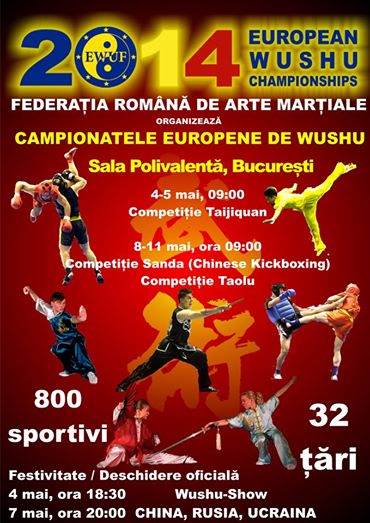 Bucureştiul a devenit un oraş de tradiţie pentru wushu-ul european. Astfel, pentru a doua oară consecutiv, Capitala României va găzdui Campionatele Europene de Wushu, competiţie ce va debuta duminică, 4 mai, la Sala Polivalentă din Bucureşti. Evenimentul este structurat în două parti: pe 4 şi 5 mai se vor desfăşura activităţi de Taijiquan şi stiluri interne de Wushu, înainte acestora fiind programată ceremonia de deschidere a evenimentului (4 mai, ora 18.30).