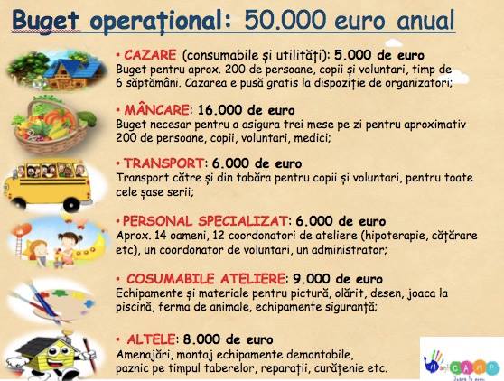 Impreuna putem ajuta sa indeplinim visul fiecarui copil de a participa gratuit in tabara.Fondurile stranse pana acum, sunt 8955 lei de la prieteni plus 44000 lei de la companii.