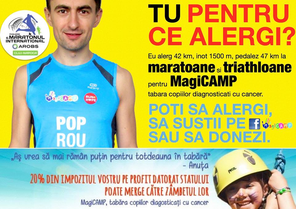 Pe 10 aprilie 2016, Clovnul Felix, pe numele său Vlad Pop, vrea sa alerge 42km la Maratonul International Cluj-Napoca pentru cei mai curajosi si puternici copii. Ei fac parte din MagiCAMP, o tabara plina de magie, aventura si poveste pentru 100 copii bolnavi de cancer. MagiCAMP are nevoie de 5000 euro pentru cazare, 16.000 euro mancare, 6000 euro transport si alte cheltuieli. Vlad a alergat pentru ei la 21 de competitii de maraton, triathlon si IronMan in 2016, adică un total de aproximativ: inot 19 km, pedalat 570 km, alergare 480 km. si a ajutat la strangerea de fonduri pentru a acoperi costurile necesare taberei prin Galantom: http://magicamp.galantom.ro/donations/add?id_fundraising_page=2002.