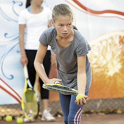 A.G.: Pot să vă spun că aceşti copii nu au copilărie. Turneele, de regulă, încep sâmbăta, deci nu au weekend. Nu au zile libere, merg de la şcoală la antrenament. Sunt destule sacrificii. Ei fac exerciţii de cinci ori pe săptămână şi de două ori pregătire fizică după antrenamentele de tenis. Avem un preparator fizic la Olimpia care se ocupă special de ei, făcându-le un antrenament specific, fără de care nu te poţi ridica la standarde înalte. Încep cu nişte ture de teren, apoi exerciţii cu jaloane, o scăriţă pe care calci jos pentru coordonare, minge medicinală pentru forţă, abdomene.