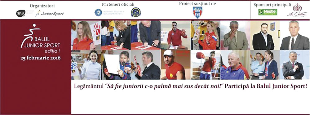 Castelul din inima Bucureștiului – „Le Château“ – a găzduit pe 25 februarie Balul JUNIOR SPORT, eveniment organizat de către Revista Junior Sport și Trima Events, care a avut drept parteneri oficiali Ministerul Educaţiei și Cercetării Ştiinţifice și Universitatea de Educaţie Fizică și Sport București, fiind susţinut de Clubul Sportiv al Armatei Steaua București, dar și de importante federaţii sportive din România. Direcţia pentru Sport și Tineret a Municipiului Bucureşti s-a numărat printre susţinători, alături de alte instituţii/organisme private. În cadrul evenimentului a avut loc Gala de Premiere a celor mai valoroși 11 juniori de la primele 11 discipline sportive olimpice, care au avut cele mai bune performanţe în anul 2015 și cărora li s-a acordat „Trofeul Juniorul Anului 2015“. În plus, au fost oferite 9 trofee speciale – „Speranţa Junior Sport“ (2 trofee), „Legende ale Sportului Românesc“, „Performanţa în Familie“, „Născut special, dar născut pentru Sport“ (2 trofee), „Antrenorul anului 2015“, „Părintele anului 2015“, „O viaţă dedicată promovării sportului românesc“ – și au fost susţinute două povești de viaţă ale unor copii din mediul sportiv, câștigători, la rândul lor de trofee – Ştefania Priceputu şi Gheorghe Teodor.