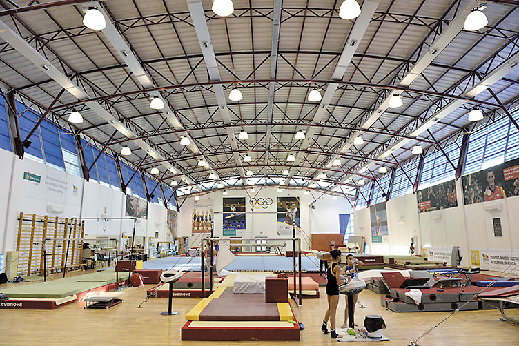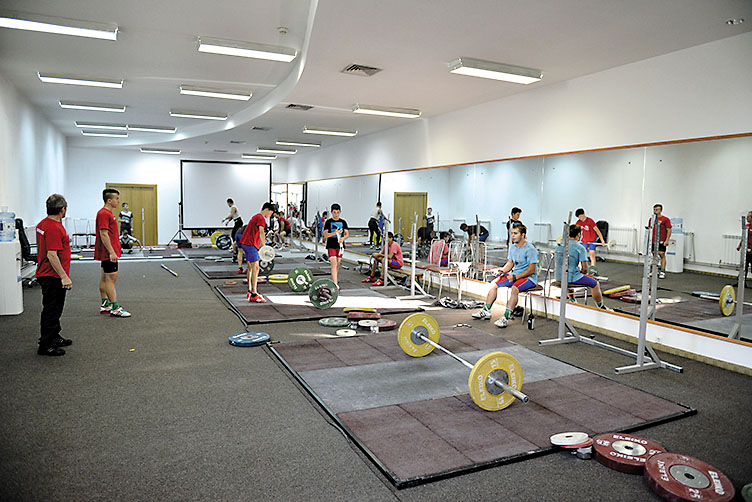 Sală de gimnastică, cu sală de forţă, patru vestiare, două saune, cabinet medical, terasă, folosite de componentele lotului naţional.