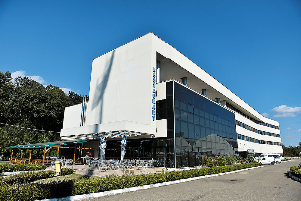 Două hoteluri, unul cu 92, celălalt cu 54 de locuri de cazare, restaurante, terase, o piscină descoperită, bucătării, săli de mese.