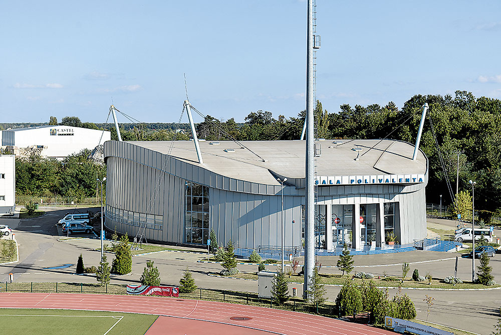 Sala polivalentă, destinată sporturilor cu mingea, are pe lângă terenul de joc, zece vestiare, două săli de forţă, saună, mese de tenis de masă, iar spectatorii, o tribună cu 122 de locuri.