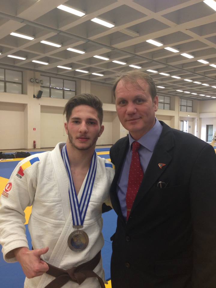 În cadrul aceleiași categorii, sportivul giurguvean Sorin Băluță (16 ani), dublu medaliat cu bronz la Campionatul European din anul 2014 (fighting și ne-waza) și component al clubului AQUILA Giurgiu, a ocupat locul V. Sorin a început bine, cu o victorie împotriva slovenului Nejc Noc (10-3) și surclasându-l clar pe reprezentantul Ucrainei, Dmytro Kanin (Full Ippon). Din păcate, după pierderea semifinalei cu scorul de 8 la 9 în fața rusului Gevorg Lazarian, Sorin nu a reușit să cucerească bronzul categoriei, pierdut în fața aceluiași polonez Piotr Kokosza care îl învinsese la Vacariu în meciul anterior.