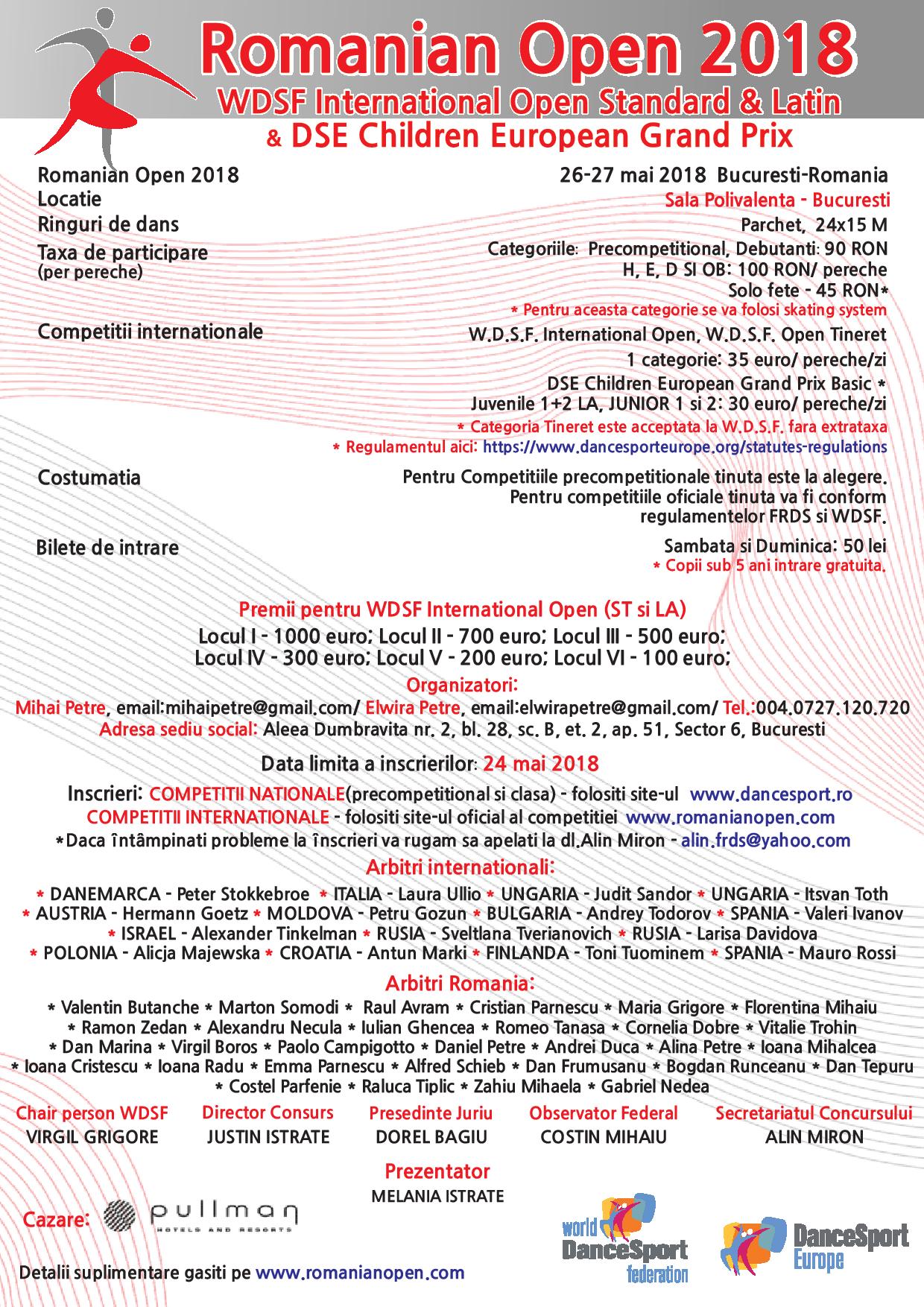 “Sâmbătă și duminică, 26 și 27 mai, Mihai și Elwira Petre organizează impreuna cu Federatia Romana de Dans Sportiv si Federatia Mondiala de Dans Sportiv, cea de-a șaptea ediție a competiției de dans sportiv, Romanian Open, unul dintre cele mai mari concursuri de gen din țară.