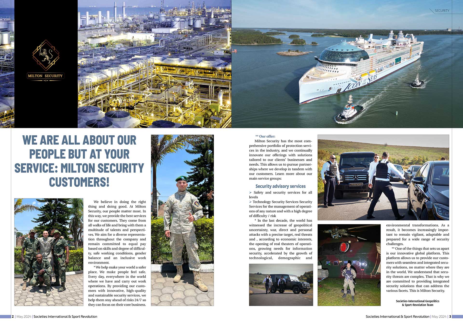* Vă ajutăm să faceți lumea dvs. un loc mai sigur. Îi facem pe oameni să se simtă în siguranță. În fiecare zi, în toată lumea unde avem si desfasuram operatiunile de lucru. Oferind clienților noștri servicii de securitate inovatoare, de înaltă calitate și durabile, îi ajutăm 24/7 să se mențină în fața riscurilor, astfel încât să se poată concentra asupra activității lor de bază.